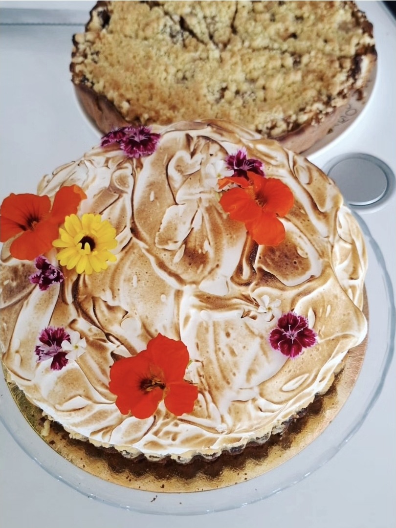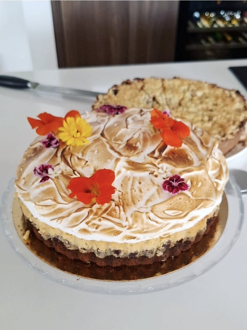 Onze Key Lime Pie als grote taart voor het perfecte feestmoment! Met speculoosbodem, limoenvulling en meringue.