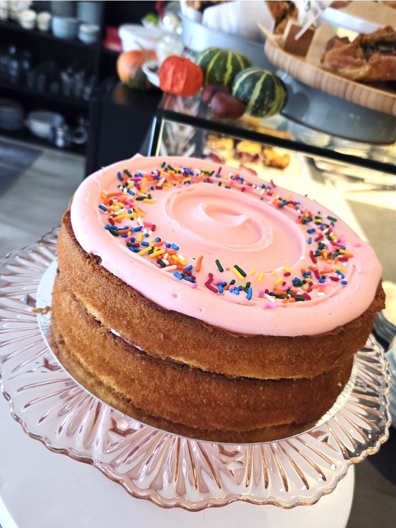 Vanillecake met heerlijk zachte cream cheese icing en sprinkles.